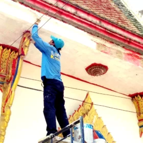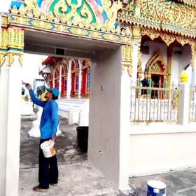 ทาสีบูรณะโบสถ์ ติดตาข่ายกันนก ณ วัดขุมแก้ว